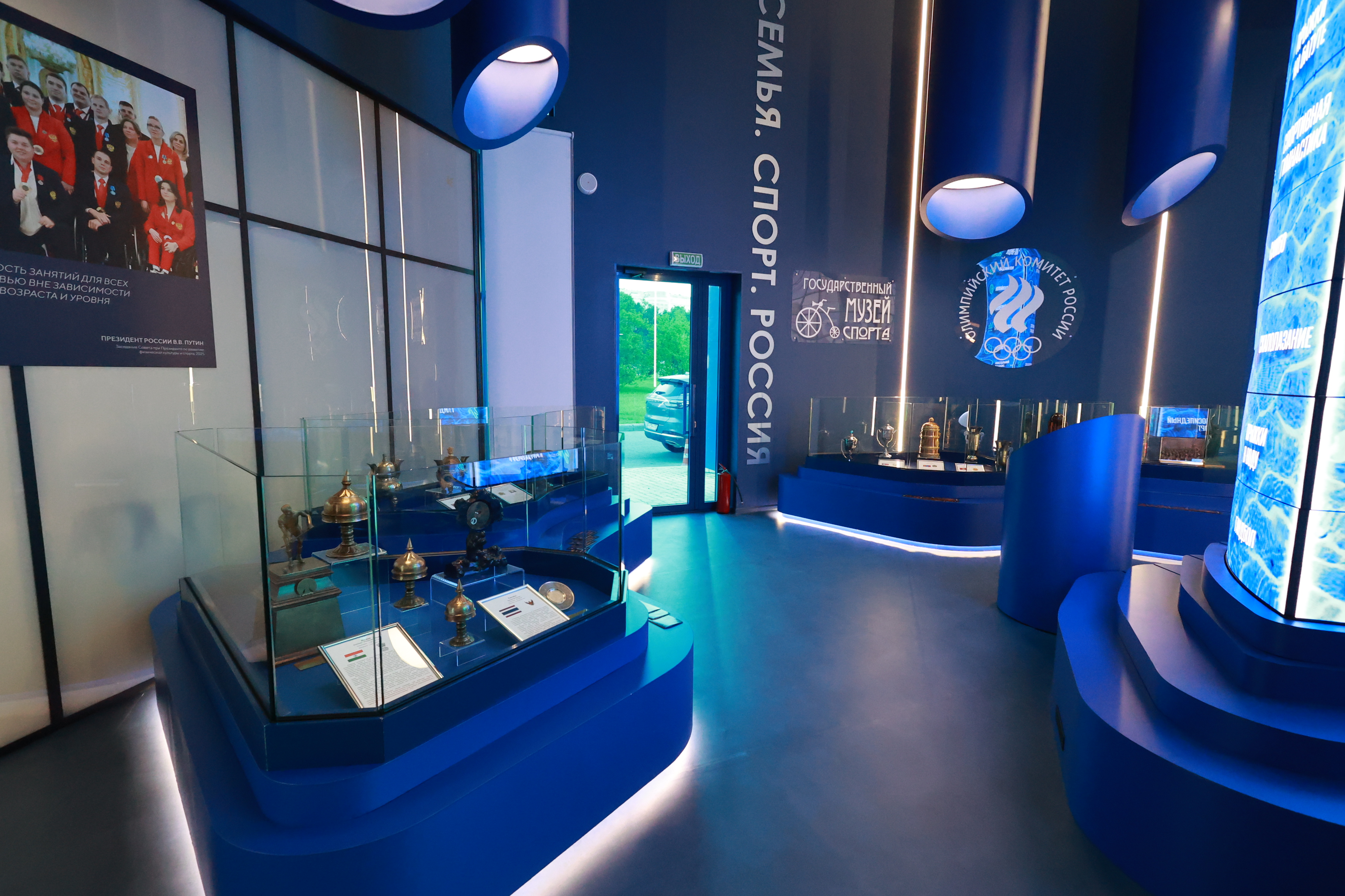 Павильон «Спорт России» вдохновляет обновленной концепцией: системные перемены, консолидация, новая модель управления — вся экосистема в действии, полная достижений и потенциала. Притягивающий внимание интерактив: кинетические модули взирают трибуной инфографики, уличные экраны запускают в мир спортивной индустрии. Вращающаяся колонна «Я выбираю спорт» открывает факты, инфраструктуру и программы для детей. Построенная телестудия и зоны презентаций выступают пространством диалога о состоянии и достижениях российского спорта.